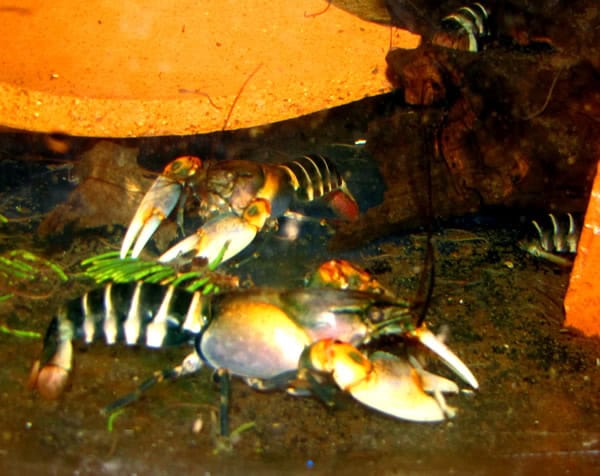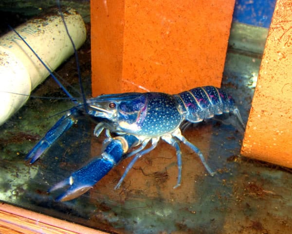 Cobalt Blue Lobsters are quite territorial towards their own kind or similarly shaped and sized crayfish species and will need to be housed either singularly within a smaller aquarium (30 gallons or less) or provided at least 20 gallons of aquarium territory per specimen if kept in a larger aquarium. While they are generally peaceful towards fish species and other invertebrates, they will eat fish that are very small and slow enough for the crayfish to catch. Providing the Cobalt Blue Lobster plenty of easy meals consisting of meat based sinking pellets or algae wafers will help curb their aggression towards any fish living in the aquarium, as they will go for the easier meal. Cobalt Blue Lobsters also tolerate a wide range of aquarium conditions including pH, GH, temperature and water quality and should do well in any reasonable aquarium setup.